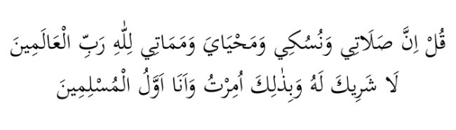 “Kul İnne salâtî ve nüsükî ve mahyâye ve memâtî lillâhi rabbi’l-âlemin.