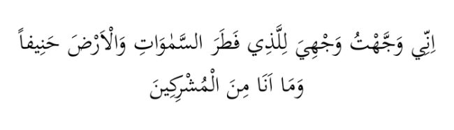 “İnnî veccehtü vechiye lillezi fatare’s-semâvâti ve’l-arda hanîfen ve mâ ene minel müşrikîn.”